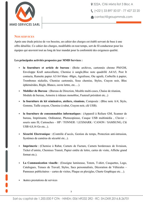 Presentation Mmd Services Sarl
